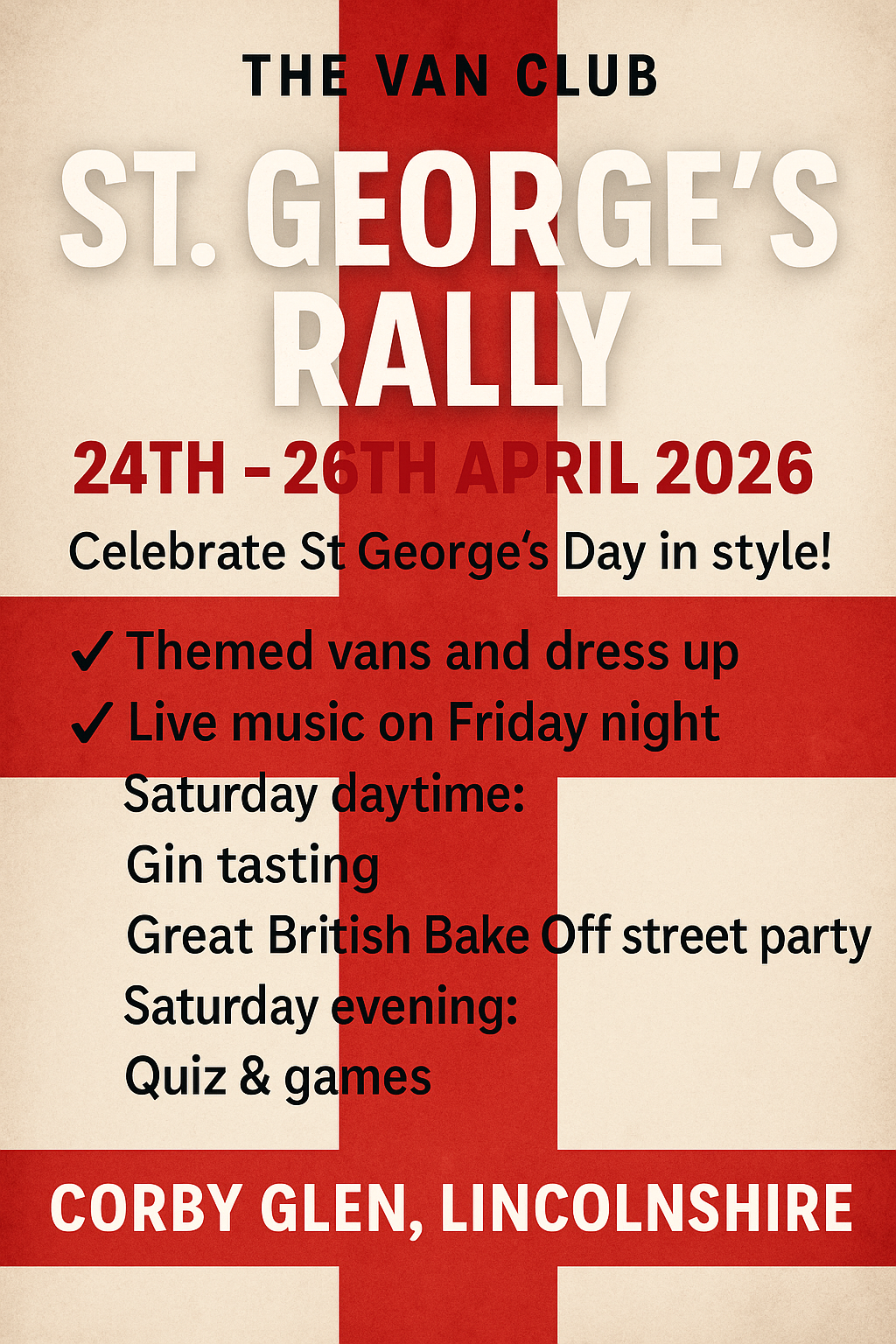 Celebrate England’s patron saint in true Van Club style with a fun-filled St George’s Day weekend at the beautiful Corby Glen! Expect red and white flags, laughter, music, and a big slice of British pride as we turn the village into a weekend festival of fun.